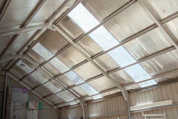 Skylights create bright, comfortable interiors. Flexible layouts accommodate various needs, from garages to workshops to warehouses.