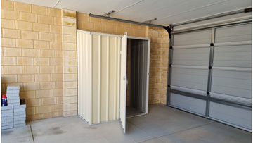 The great thing about this 1.50m x 0.78m x 1.80/1.95m Off-the-Wall compact storage shed is that it is able to fits under eaves but still makes it perfect for the storage of sport equipment or even just a place to put that excess stuff that you don't want in the house. This Off-the-Wall storage shed is ideal for storage in garages & carports in unit complexes as well as on small metro blocks.This garden shed comes with a 0.75m hinged single door, positioned on the 1.50m width, making it the ultimate storage unit for those areas where space is limited. The door is braced to ensure the integrity of your shed structure and is designed to allow easy access to your shed's contents. Our door locks use a pad bolt and hasp, which is a secure form of locking. You can add a padlock to the door for added security at your own discretion.